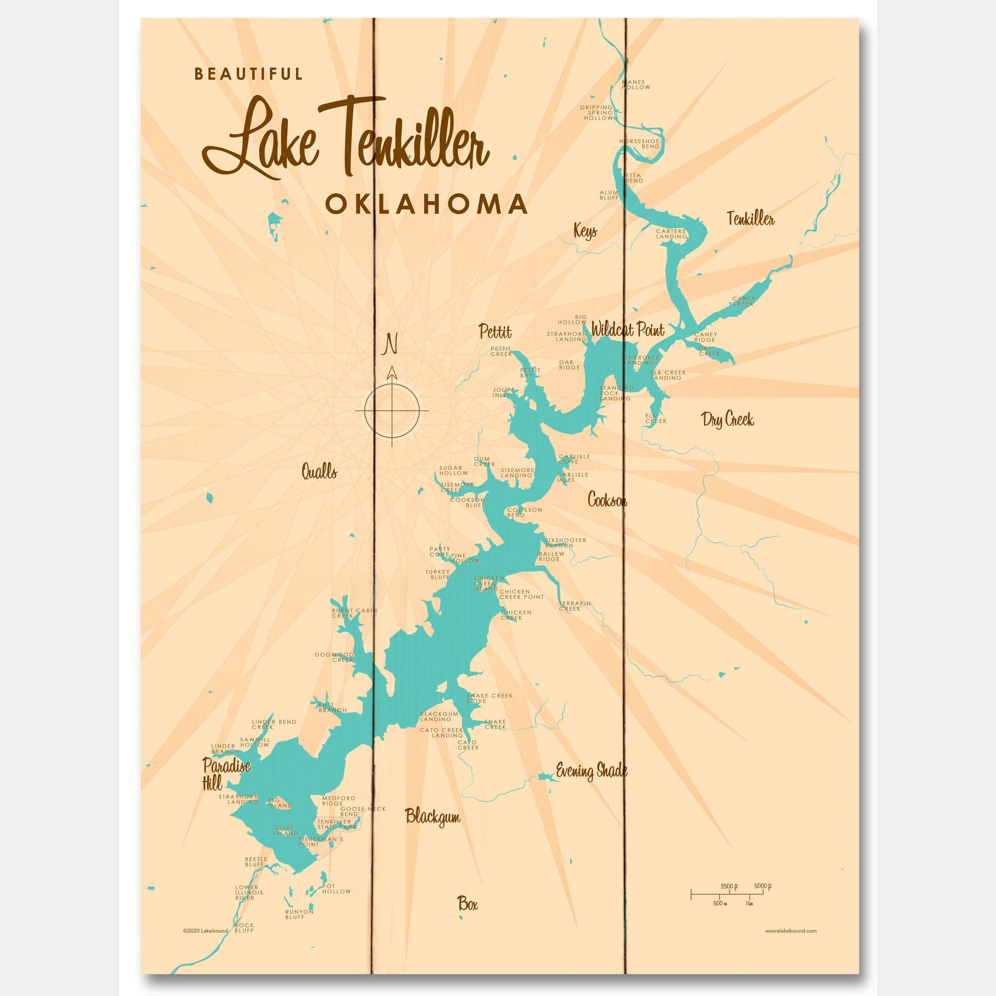 Lake Tenkiller Oklahoma, Wood Sign Map Art – Lakebound®